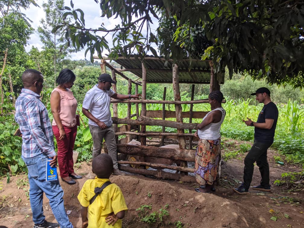 Harry Gunn from Impact Marathons (right) visiting our Big Pig project in rural Rwanda.