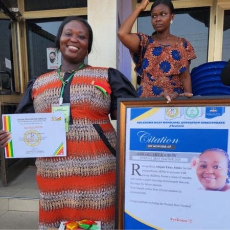 Abigail Ekua Abbiw, a teacher who received training through the Best Start Together project in Ghana recently won Overall Best Teacher award 2024 in her district. Abigail was recognised for her creative teaching and significant impact on the lives of young children.